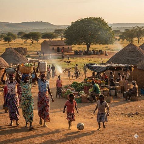 This image is not meant to represent all of Africa, but to depict a plausible and relatable daily experience for millions, blending common elements from across the continent.
