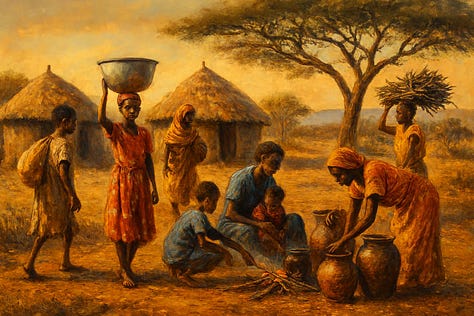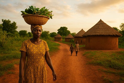 Three different AI interfaces. Three remarkably similar images. All rural. All traditional. All depicting what I can only describe as a frozen-in-time version of Africa that exists primarily in Western imagination. Not a single smartphone. Not one vehicle. No concrete buildings. No hint of the reality many Africans actually live.